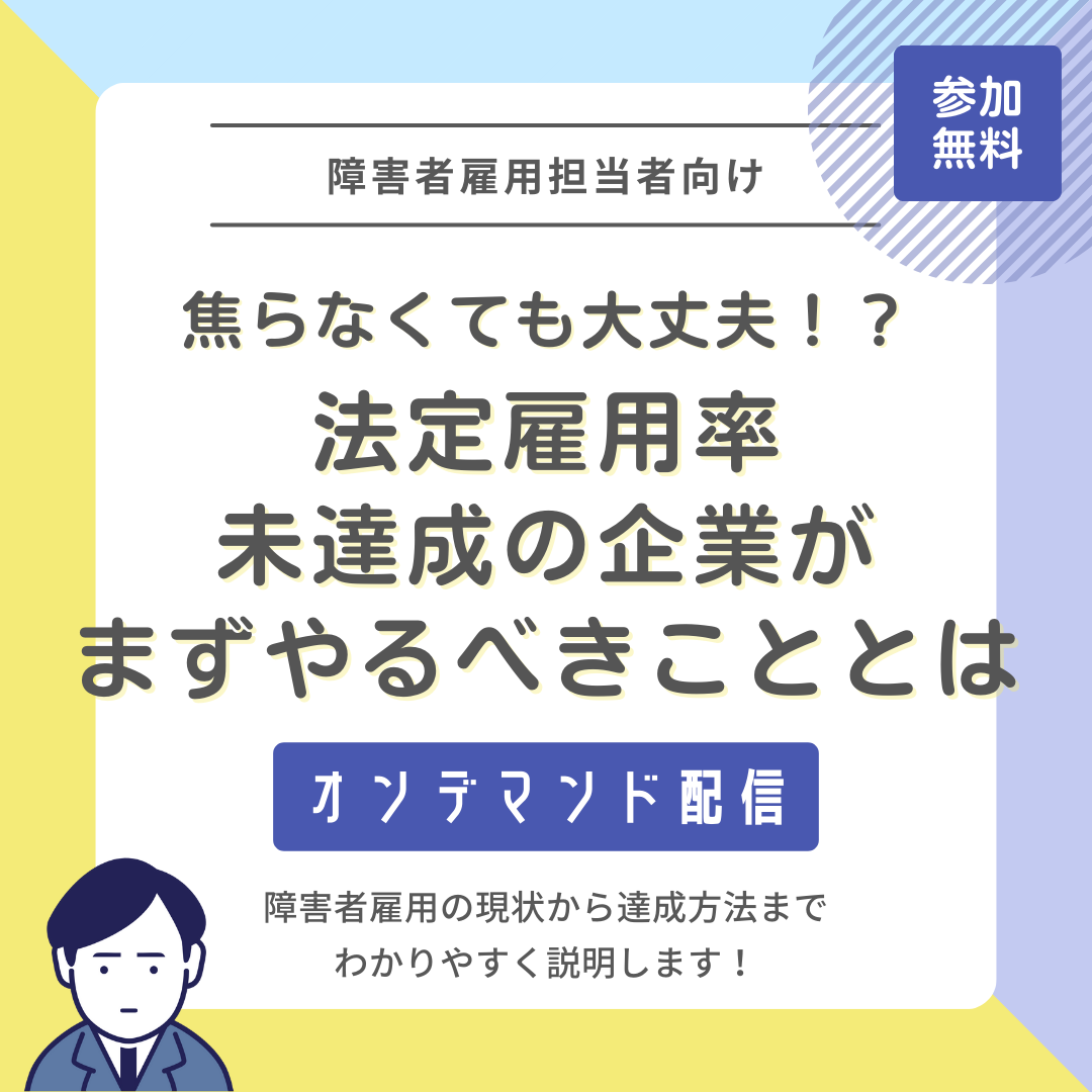 【オンデマンド配信】障がい者雇用の基本からトレンドまで焦らなくても大丈夫!?法定雇用率未達成の企業がまずやるべきこととは