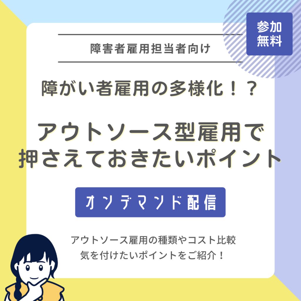 【オンデマンド配信】障がい者雇用の多様化!?企業がアウトソース型での障碍者雇用を検討する際に抑えておきたいポイント
