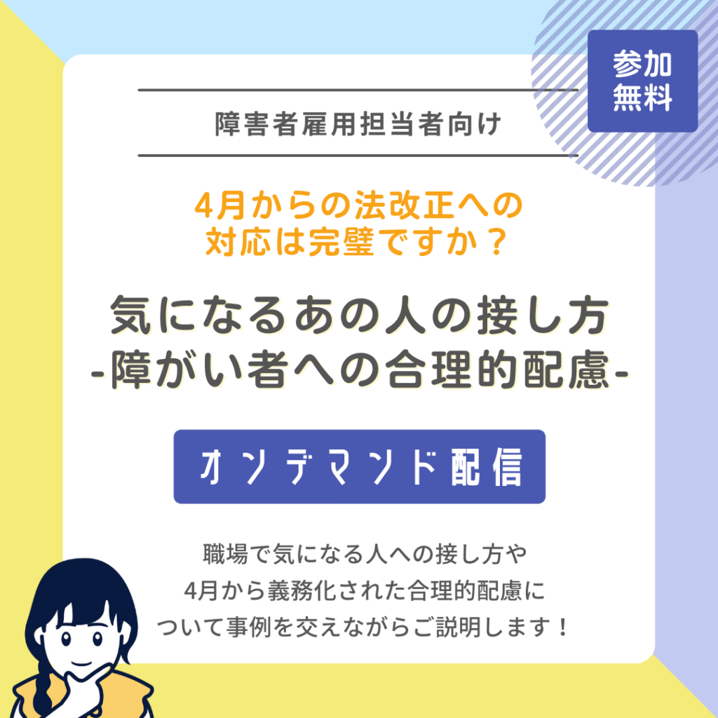 【オンデマンド配信】気になるあの人の接し方- 障がい者への合理的配慮-